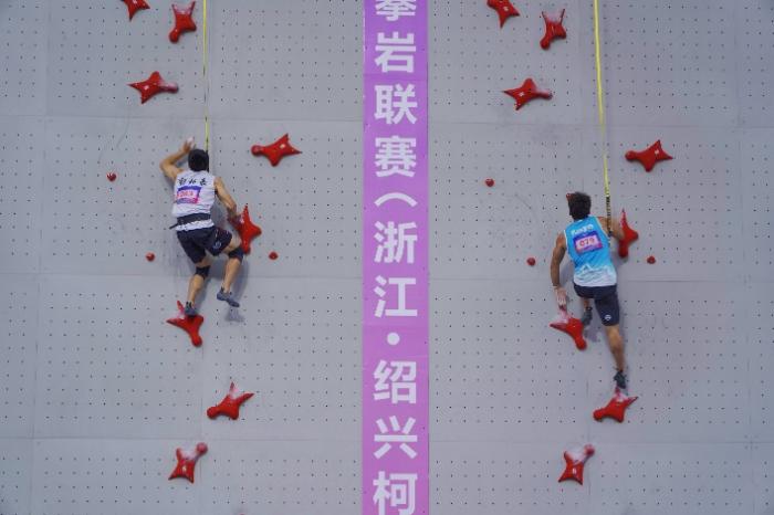 在浙江绍兴柯桥区羊山攀岩中心举行的中国攀岩联赛第二站吸引了来自全国多地的近百名攀岩爱好者参与,赛事设置包括速度攀爬和两项全能等高强度项目,展现出不同年龄层选手的竞...