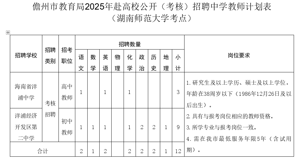 本次招聘岗位由海南省洋浦中学和洋浦经济开发区第二中学提供,共设中学教师职位40个,其中高中教师7名、初中教师33名,涵盖语文、数学、英语等学科领域。招聘对象为符合岗位条件的高校应届毕业生及优秀在职教师,年龄原则上不超过38周岁(1986年12月26日及以后出生)。
