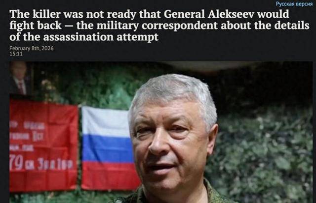 据俄罗斯《EADaily》2月8日报道,战地记者亚历山大·科茨披露了俄罗斯中将阿列克谢耶夫遇刺的细节。